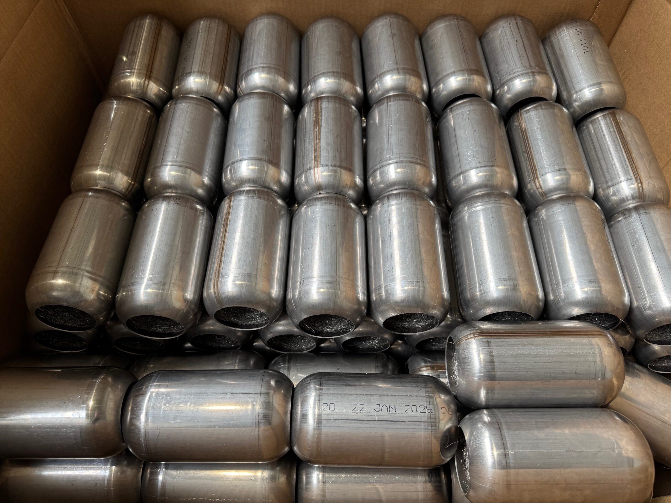 These are usually mounted on a perforated pipe in the gas inlet of the muffler box, fixed by welding or ridgelocking.
