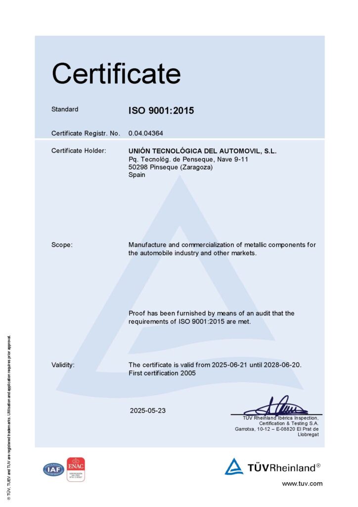 The Quality Policy of UNITEC, S.L. establishes that the General Management, representing the entire Organization, is committed to designing, developing, implementing, maintaining, and improving a Quality management system based on the ISO 9001:2015 Standard, with the following scope: